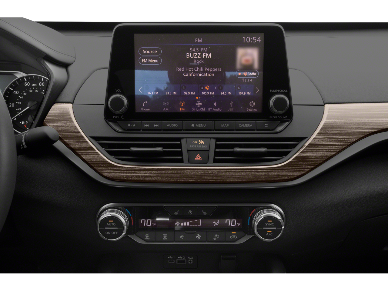 - Radio: AM/FM/HD w/Bose Premium Sound System -inc: 9 speakers, NissanConnect w/navigation and services, Nissan door to door connected navigation w/3D building graphics, satellite imagery, online POI search, online premium traffic information, SiriusXM Traffic, SiriusXM Travel Link (weather, fuel prices, movie listings, stock info, sports and parking), Radio Data System, MP3, aux-in, NissanConnect featuring Apple CarPlay, Android Auto, 8" color display w/multi-touch control, SiriusXM satellite radio w/advanced audio features, 2 front illuminated USB connection ports (1 Type-A, 1 Type-C) for iPod interface and other compatible devices, Bluetooth hands-free phone system, streaming audio via Bluetooth, Hands-free text messaging assistant, Siri Eyes Free/Google Assistant voice recognition and Over-the-air (OTA) updating for headunit firmware via a Wi-Fi WPA2 connection